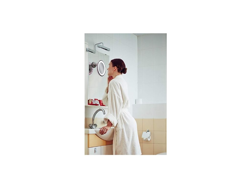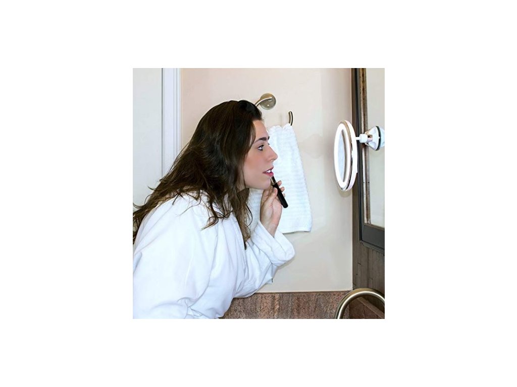 Zrkadlo s ideálnym rozmerom do kúpeľne, ktoré jednoducho vďaka špeciálnej prísavke pripevníte, kamkoľvek budete potrebovať. Také je praktické 10x zväčšujúce LED kozmetické zrkadlo biele, ktoré je opatrené 16 LED diódami, s ktorými vám neunikne žiadny detail. Silné svetlo ale neoslňuje a neskresľuje farby, takže ľahko dosiahnete dych vyrážajúci make-up bez jedinej chybičky. Obrovskou výhodou, ktorá vám uľahčí líčenie, je možnosť nastaviť zrkadlo v 360 °.