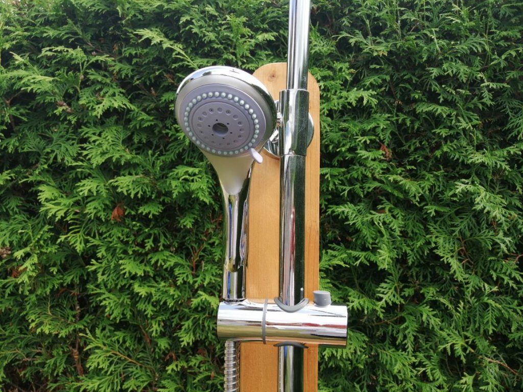 Drevená záhradná sprcha CDR s ručnou sprchou tak môže byť vhodná ako sprcha na chalupu a chatu.
