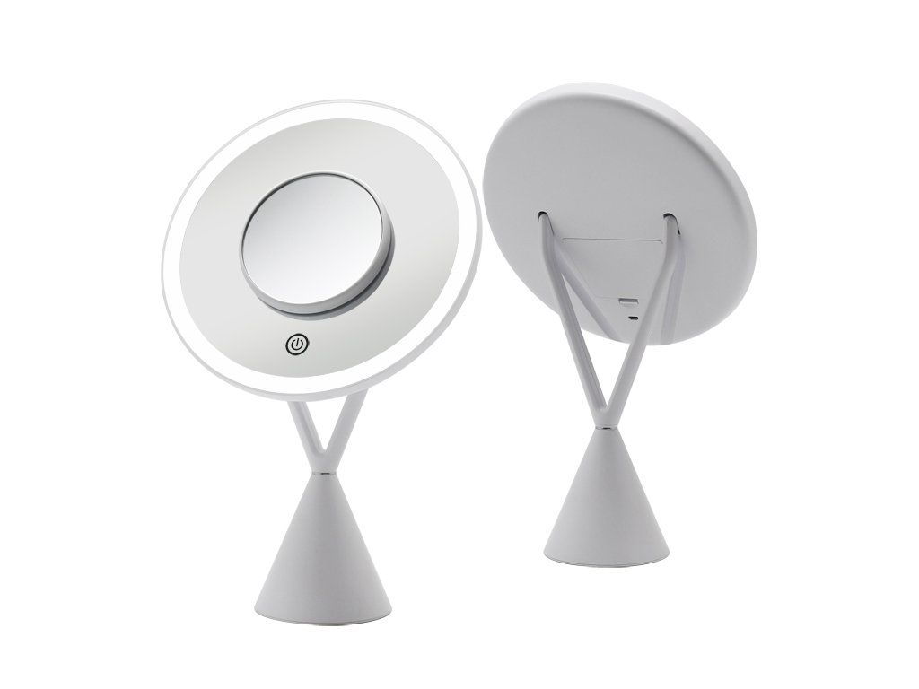 Kozmetické zrkadlo má ideálnu veľkosť 34 x 21 cm na použitie v kúpeľni alebo na kozmetickom stolíku v spálni. Stabilitu zaisťuje guľatý podstavec s priemerom 9 cm, zrkadlo tak možno postaviť na akýkoľvek rovný povrch. Nabíjanie vstavanej lítiovej batérie s kapacitou 1000 mAh je pomocou USB. Zrkadlo je vyrobené zo skla, ostatné časti sú z tvrdeného ABS plastu. Dodáva sa v bielej farbe.