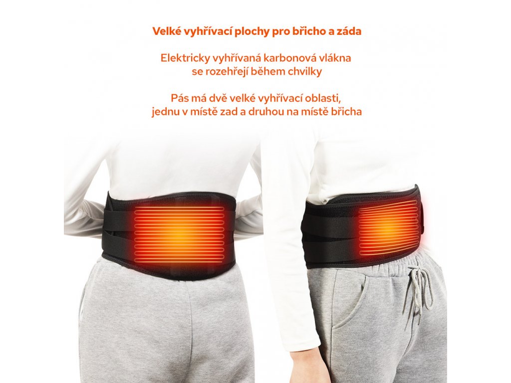 Výhodou vyhrievaného pásu je jeho komfort, vyrobený je z nylonu a elastanu, takže skvele prilieha k telu a teplo tak zbytočne neuniká. Uhlíkové vlákna hrejú predovšetkým v oblasti obličiek, preto je možné pás používať aj ako vyhrievaný obličkový pás. Pás môžete pohodlne nosiť pod oblečením a nijako vás neobmedzuje. Úľava od bolesti a svalového napätia je približne už po 30 minútach. Vyskúšať odporúčame aj ďalšie vyhrievané oblečenie.