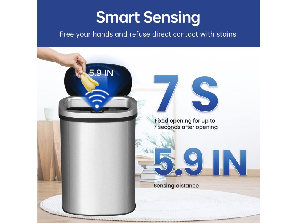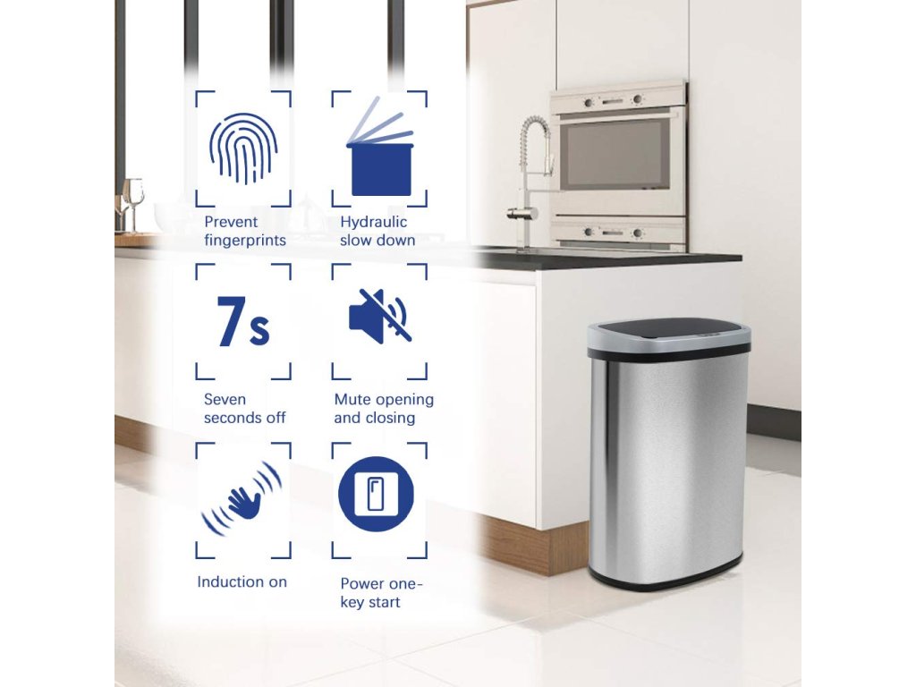 Integrovaný šikovný infračervený senzor zaistí automatické otvorenie, akonáhle zaznamená pohyb vašej ruky alebo priblíženie odpadku - a to na vzdialenosť niekoľkých centimetrov. Ovládanie je úplne bezkontaktné, čo výrazne zvyšuje úroveň hygieny v domácnosti, kuchyni aj kancelárii. Už žiadne ohýbanie, šliapanie ani dotýkanie sa veka – len pohodlné, rýchle a čisté vyhodenie odpadu. Po vhodení sa veko automaticky a ticho uzavrie v priebehu niekoľkých sekúnd bez toho, aby ste sa museli o čokoľvek starať.