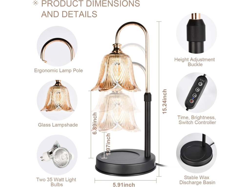 Elektrický ohrievač sviečok vám umožní užívať si atmosféru sviečok každý deň bez toho, aby ste museli neustále sledovať horiaci knôt alebo čistiť roztavený vosk, produkt je bezúdržbový. Tento prístroj k tomu nie je len funkčný, ale aj dizajnovým kúskom. Model s kovovým držiakom a skleneným tienidlom v tvare kvetu skrášli váš domov. Je možné ho používať v prostredí od -5 do 45 °C a nechýba ani stupeň krytia IP20 ako garancia bezpečnosti pre použitie doma, na chalupe alebo v kancelárii.