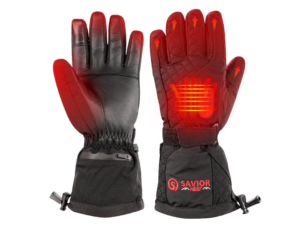 Elektricky vyhrievané rukavice SAVIOR sú ideálne pre akékoľvek outdoorové a zimné športové aktivity, hodí sa pri kempovaní, vysokohorskej turistike aj pri jazde na zimnom bicykli alebo pri lyžovaní. Rukavice sú vyrobené z pravej kože, čo im zaisťuje perfektnú vetruvzdornosť, napriek tomu sú mäkké a umožňujú flexibilný úchop. K tomu sú ukazovák a palec opatrené povrchom z mikrovlákna, ktorý uľahčuje používanie dotykových zariadení bez nutnosti zloženia rukavíc. Dodávajú sa v rôznych veľkostiach av čiernom prevedení s červenými reflexnými prvkami.